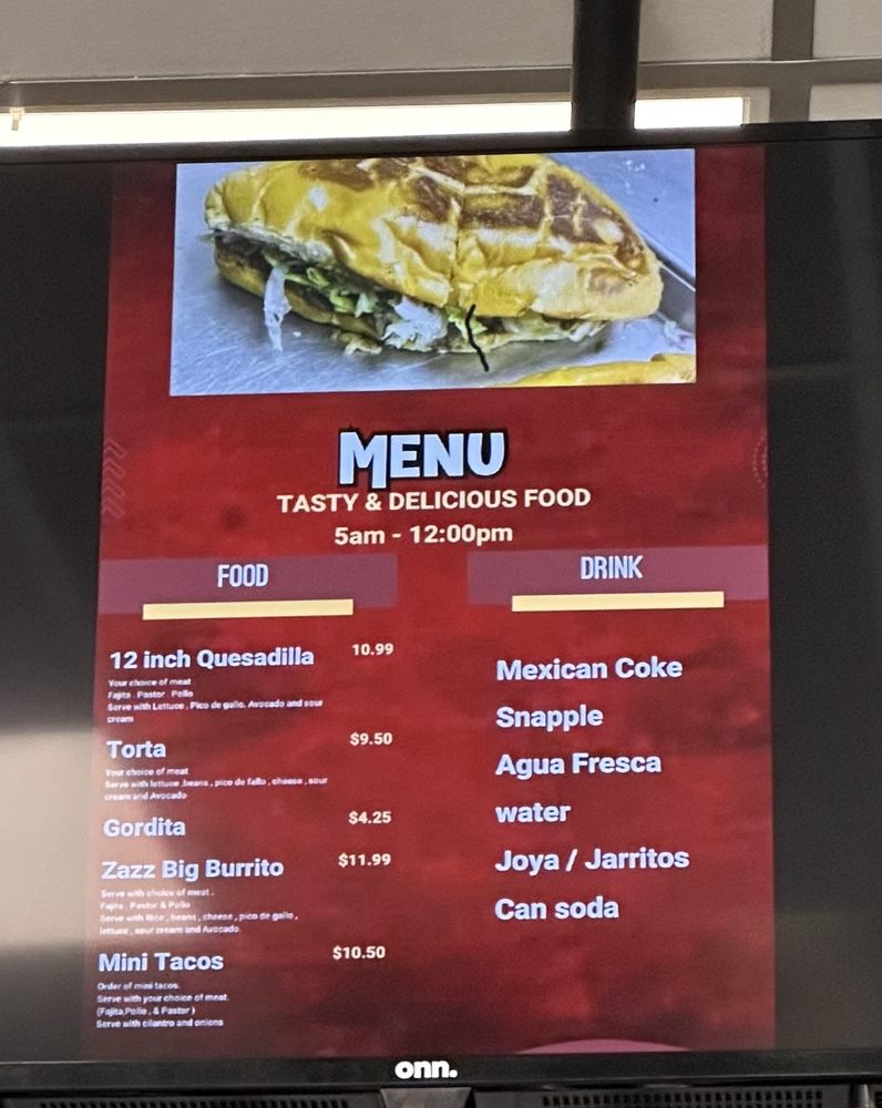 Reviewers rave about the Birria Tacos, drawing applause for their bold flavors and generous portions. The Quesadillas are another highlight, filled with melted cheese and a choice of savory meats, all served warm and fresh. The warm and inviting atmosphere, coupled with personable service, enhances the overall dining experience. Despite minor notes on seasoning, diners consistently rate Zazz Burritos a perfect 10, making it a must-visit for any Mexican food lover.